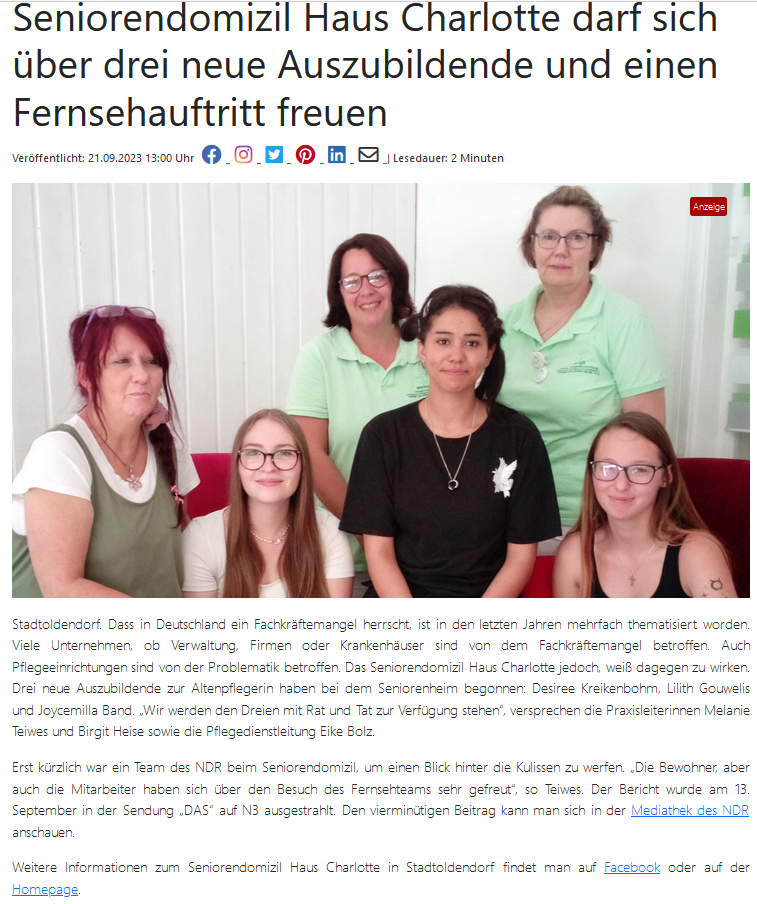 Auch unsere Auszubildenden sind immer wieder einen Bericht in der regionalen Presse wert.